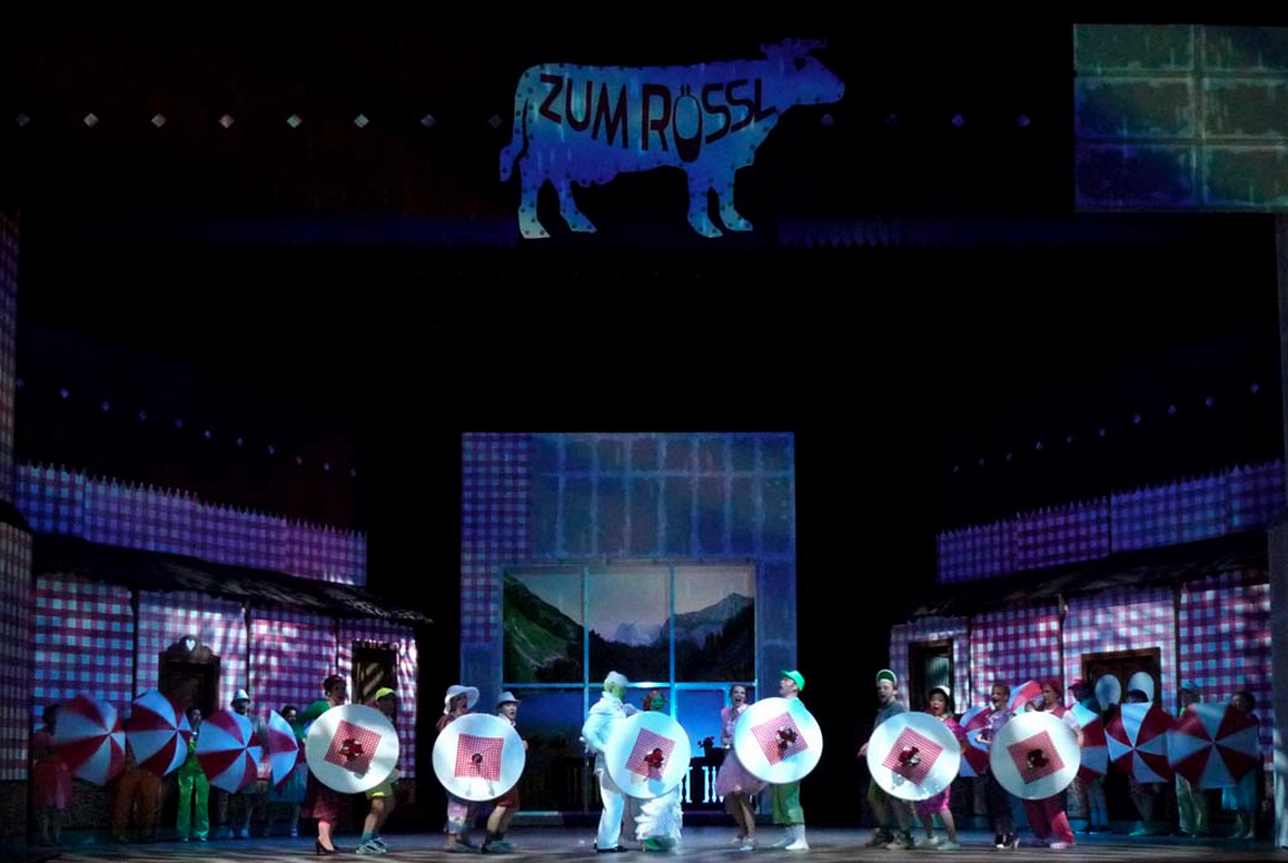 Der Kellner Leopold bemüht sich unverdrossen um die Gunst seiner Chefin, der Wirtin Josepha Vogelhuber, die aber ein Auge auf ihren Stammgast, Rechtsanwalt Dr. Siedler, den sie noch heute erwartet, geworfen hat. Dieser wiederum interessiert sich für Ottilie, die soeben mit ihrem Vater, dem Berliner Trikotagenfabrikanten Giesecke, im "Weißen Rössl" abgestiegen ist.