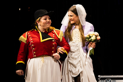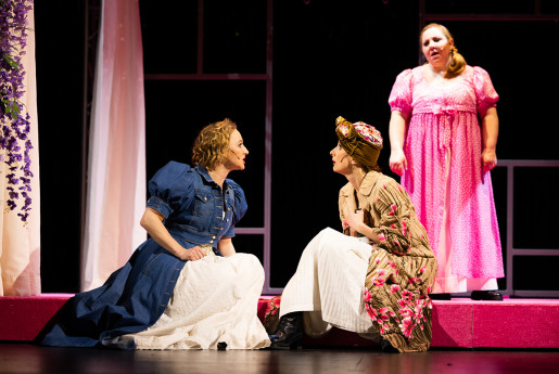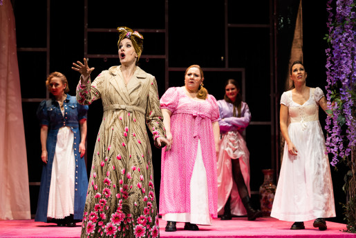 Fünf Schauspielerinnen verkörpern nahezu das gesamte Personal des Romans, dem die Geschichte trotzdem erstaunlich treu bleibt. Geschildert wird das alles aus der Perspektive von fünf Dienstmädchen. Inmitten von Slapstick, Popsongs und einer Liebesgeschichte entsteht dabei eine Erzählung von weiblicher Selbstbestimmung und ökonomischer Abhängigkeit. Wild, berührend, mitreißend und vor allem sehr witzig.