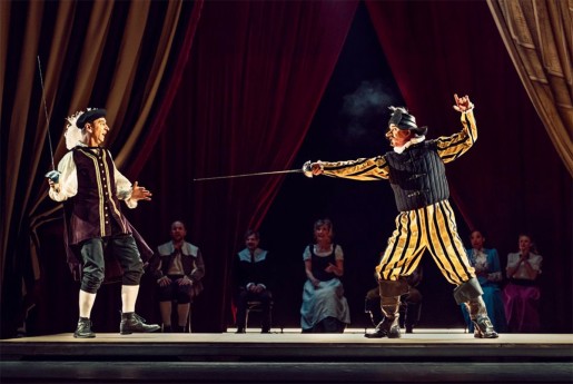 „Vorhang auf für Cyrano“ ist eine Liebeserklärung an das Theater, ein Schauspiel-Fest voller Phantasie für alle, die die Welt des Theaters lieben. Eine mitreißende, temporeiche Komödie, in der 12 SchauspielerInnnen über 45 Rollen übernehmen.